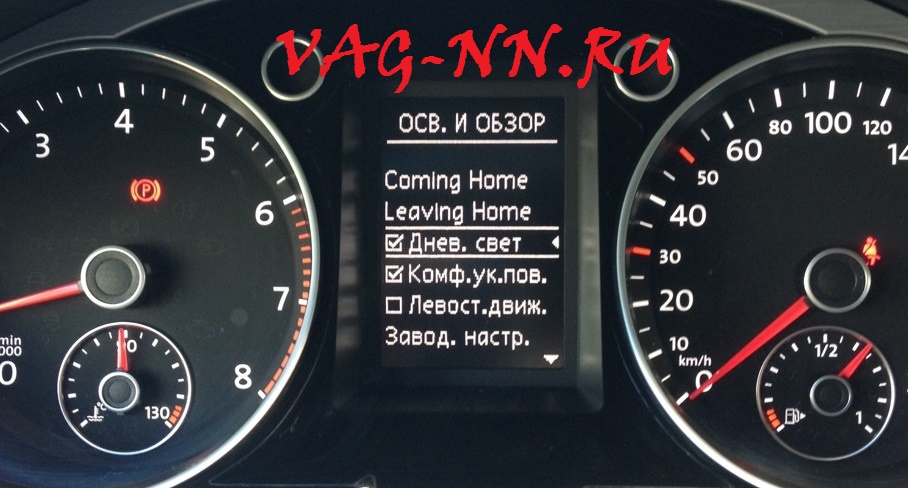 - Отключение дневного света (ходовых огней) при постановке на стояночный тормоз (ручник)